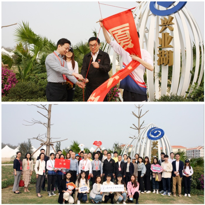 On the afternoon of April 5th, the opening ceremony of Bamin Park, Xiamen University was held at the 9 Cities and 1 District Cultural Square of Bamin Park, Xiang'an Campus. Dean Tao attended and presided over the opening ceremony of the Xingye Lake branch park jointly built by our college. Representatives of the Industrial Bank, Co.,Ltd., Chinese International Language Education College/Overseas Education College and the teachers and students of our college attended the ceremony. Prof. Tao Tao, Dean of International College, and Sun Xiongpeng, Vice President of Industrial Bank, Co.,Ltd., jointly unveiled Xingye Lake. Both parties stated that they will regularly carry out practical teaching, scientific research, popular science, labor education and other activities, and strive to build Xingye Lake into an education platform that demonstrates the results of school-enterprise cooperation.