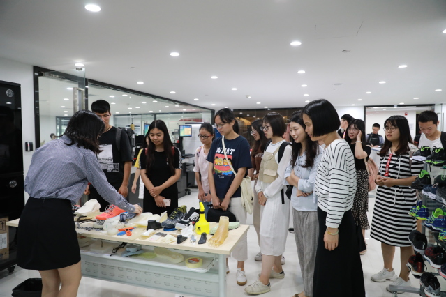 After the visit of Xiamen Taikoo Aircraft Co., Ltd., the teachers and students came to Xtep (China) Co., Ltd. The staff guided everyone to visit the sales department, research and development department and staff leisure area. The modern sales department, which is decorated in red as the main color, indicates that the sales performance is booming. The high- tech elements of the running shoes research and development department deeply impressed students. Those different friction coefficients of the circular runway, 360-degree speed measuring equipment, human skeleton model, 3D printers are to everyone's admiration. The work area that Xtep has created for its staff is fairly modern, which wins the good feelings of the students at once. The sea view buffet restaurant on the 25th floor can provide catering services for 200 employees. Free karaoke, gymnasium, yoga room and free private education for employees also reflect Xtep’s sincerity in creating a healthy living environment for employees.