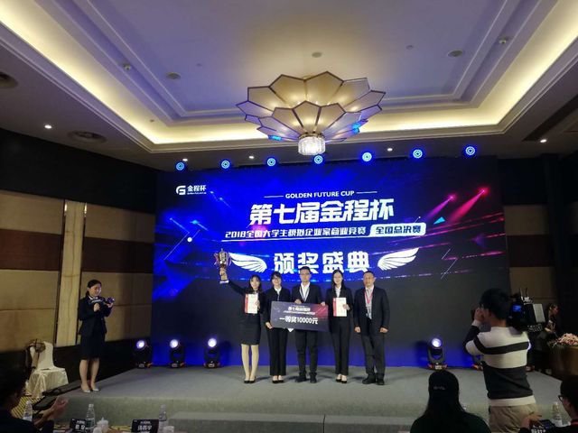 7th Jincheng cup - 2018 national college students future CEO competition was sponsored by financial services committee of China market society. It took 2 months from the preliminary round to the final, with 463 teams from all over the country and more than 3,000 participants. On the national final that holds on December 8, the team Red Forest, composed of three students from our college Wang Xiyue, Dong Wenjun, Zhang Xu overcame all the difficulties and gain the championship in the national finals, and they also won the network popularity award.