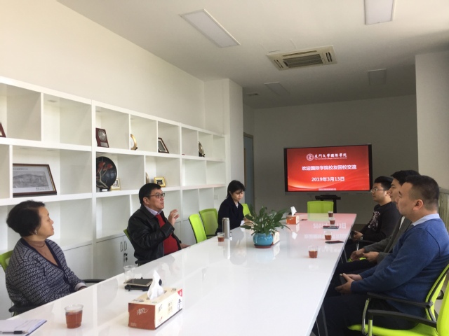 On March 13, Huang Ganggang, executive vice President of the alumni association of international college, Huang Xiaoze, vice President of the alumni association of international college and Lin Di, 2011 alumni of international college visited. held an exchange discussion. Professor Tao Tao, dean of the international college, Huang Guanhua, vice dean, Dai Yu, deputy director of the college office, and Su De warmly received and held an exchange meeting.