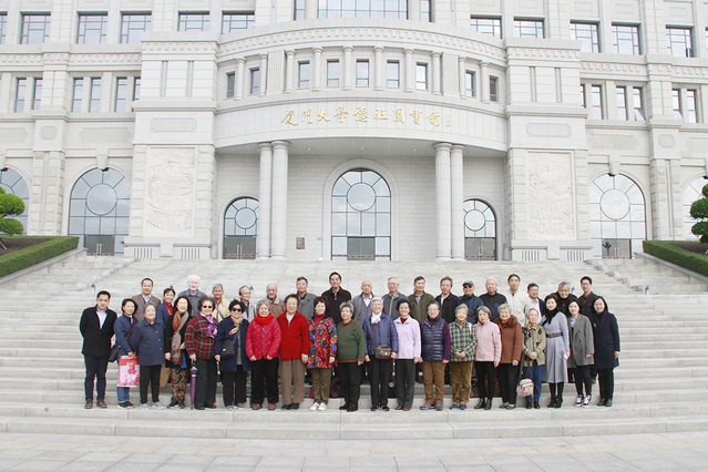 The wind is warm and the weather is nice. On the morning of January 9th, Xiang 'an campus welcomed a group of special guests. 30 retired teachers and staff of Overseas Education College/International College returned back to participate in the college's New Year activities. After arriving at the campus, they firstly visited the campus library. Walking in the huge Jia Geng building group, witnessing the magnificent DeWang library, feeling the development of the new campus, the old comrades are very happy and surprised.