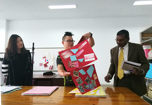 On December 14th, Dr. Panch Suntharalingam, Senior Lecturer of the Art College at Birmingham City University (BCU), came to the International College to conduct professional interviews for students of the 2017 Art Project. 12 students from the majors of graphic, illustration, jewelry and fashion design participated this interview.