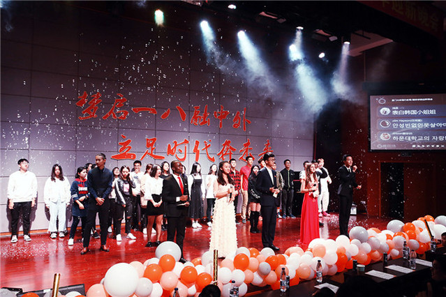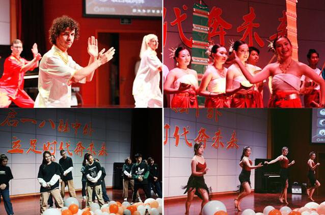 At the beginning, the art troupe instrumental team played a powerful and melodious tune “Ruling the world to heat up the evening. Then, the majestic poetry recitation “Stop at the best” given by Qi Feng drama club made the scene students remember the school motto. The Indonesian students brought the traditional Indonesian musical instrument angeron to perform. Bamboo slips of different sizes were combined together to play a wonderful music with clear sound, which amazed the audience. The song “yearning is a kind of disease” that sung by XIAO Xinru, ZHENG Yuan, YE Tianfeng was moving and melodic. The sports dance association and the Russian student July, Cameroon students DAI Si brought the passionate Latin dance performance which is full of passion and vitality, making the audience screamed and cheered constantly.