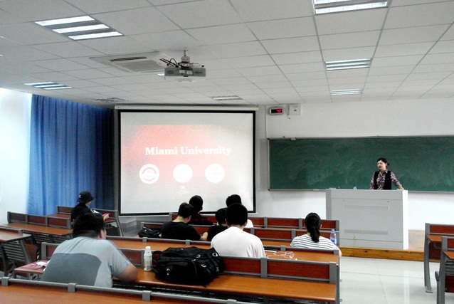In the lecture, Miss Li showed the overview of Miami University  through PPT with pictures and texts. Miami University is a public research University located in Ohio, USA.Founded in 1809, the school was one of the first eight public ivy league universities in the United States. It ranked 10th of the oldest university in American history, and it ranked 96th in the comprehensive ranking of American universities. It represents the top level of American public universities and enjoys a high reputation worldwide.