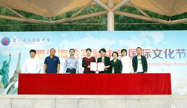 On the afternoon of October 12th, WANG Yi, Secretary of the Party Committee of International College, deputy dean Guanhua Huang, and Deputy Director of the Office DAI Yu, were invited to attend the closing ceremony of the 2018 International Cultural Festival of Xiamen Haicang Experimental Middle School. Under the witness of all the teachers, students and parents, the official cooperation agreement was signed, which laid the foundation for the future cooperation and development.