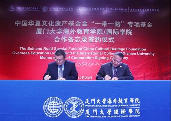 On the morning of December 23, ‘Belt and Road initiative’ special fund of China Cultural Heritage Foundation signed memorandum of cooperation with International College/Overseas Education College. On the signing ceremony, director Wu Guoyang of ‘Belt and Road initiative’ special fund and dean of International College/Overseas Education College professor Zheng Tongtao launched the ‘Belt and Road Initiative Sinology Cultural Center’ together.