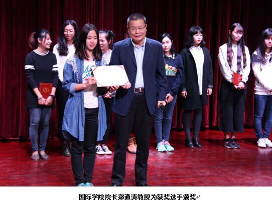 Mr. Robin Mitchell and Dr. Luo Yuanxiang briefly made comments on candidates' performance. Professor Zheng Tongtao, Dean of the International College, presented the awards to the prize winners, and stressed the positive role of speech contests in motivating students' language learning.