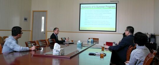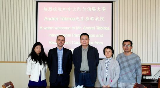 On Dec. 1, Mr. Andrei Tabirca, school official from University of Alberta visited the International College and discussed 2+2 partnership of Bachelor courses. The purpose of his visit was to promote agreements and course mapping in majors of Art, Language, Psychology and Economics, and confirm details in entry requirement and language proficiency. Professor Zheng Tongtao, Dean of the International College and Madam Huang Guanghua, Deputy Dean met the guest in the conference room of Kunluan Building.