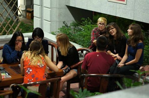 Students gathered in the Café, introducing themselves and exchanging their experiences. Domestic students are in favor of this activity. Many foreign students also show their appreciation for having such a good chance to make Chinese friends and to improve their Chinese language. “I am so happy to meet so many friends here! I will definitely come next time!” a Turkish girl said.
