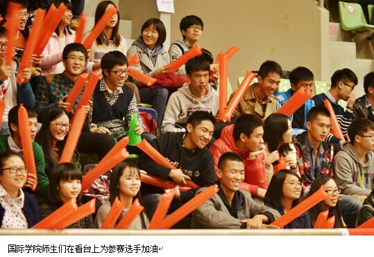 At the beginning of the fourth session, our team scored two points, and 7 points behind. Subsequently, both sides stepped up the defensive game into nearly 4 minutes of "scoring drought,"and both sides did not gain. Finally our team got points and became 5 points behind. Then,when the remaining time was 1 minute 30 seconds, the International still seven points behind. Our team showed a tenacious style of play, and they began the final fierce counterattack. First, two points, followed by a life-saving 3 points by the Captain. The score was 45: 47! Auditorium has been boiling, seem to see the comeback hopes. The 23 player of the College of Management got 2 points by free throws to stabilize the morale of the troops, and ourteam attacks failed, so we decided to use foul tactics. The other team missed two free throws. In the last moment, Chen Liming, the captain, stayed calmly and gota three points foul. After got two points in the first two free throws, he deliberately missed the third penalty, letting Tian Qianli get the rebound. Tian Qianli passed it to the outside shooter.But unluckily, he did not score, so the final score was 46: 49,3 points behind. We won the second place.