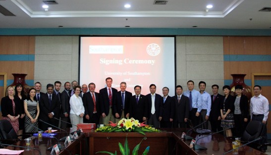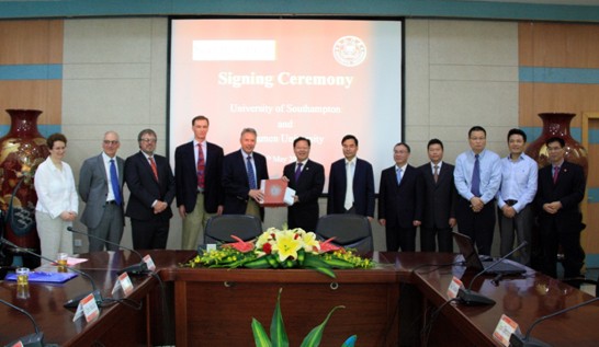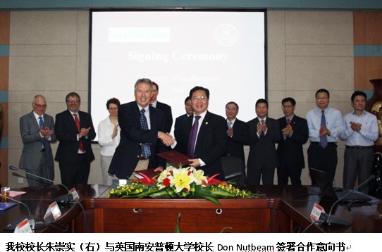 To further promote the cooperation between University of Southampton (UOS) and Xiamen University (XMU), the XMU president Zhu Chongshi received the UOS president Don Nutbeam and the visiting group in the conference room 215 in Songen Building in Siming Campus on May 8. They signed a letter of intent about cooperative education between UOS and the International College of XMU.