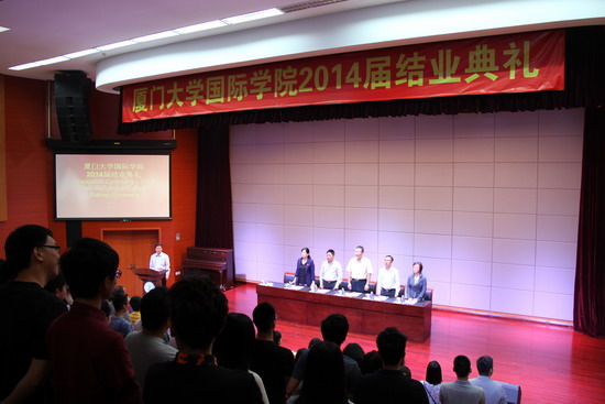 The International College graduation ceremony, 2014 was held in the multi-functional hall in Kunluan Building on Xiang’an campus of Xiamen University on April 29. Many university leaders, college leaders, representatives of Chinese Service Center for Scholarly Exchange, representatives of Sino-foreign cooperation universities, college students and their parents attended this great ceremony.