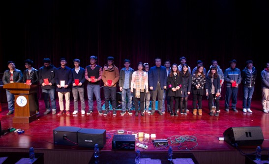 Professor Zheng Tongtao delivered a speech at the party. He praised the excellent performance of the International College basketball team, pointing that sports activities would be further strengthened. Then Professor Zheng and Secretary Chen awarded the honorary certificates for the basketball players who won the basketball league championship.