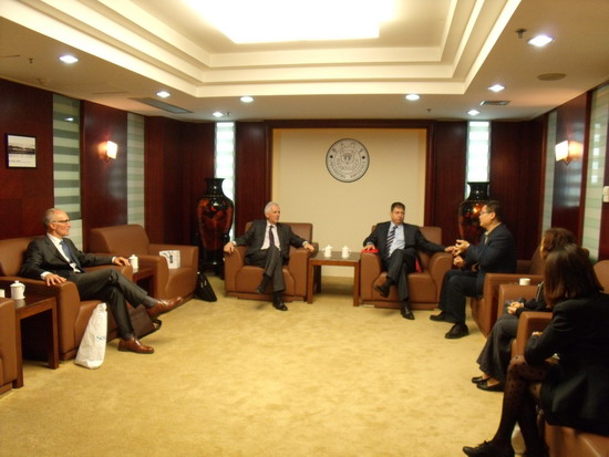 On the morning of November 27, Professor Adam Wheeler (Executive Vice President of University of Southampton), Bashir Makhoul (Dean of Winchester School of Art) and Mark Cranshaw (Dean of Confucius Institute and Director of Contemporary Chinese studies Center) visited our college. Professor Zheng Tongtao (Dean of Overseas Education College and The International College), Huang Guanhua (Office Director), Yang Xu (English teacher), Su Jin (Project Director) and Chen Jianru (Project Secretary) met with them in room 1601 of Tan Kah Kee main building on Si Ming campus.