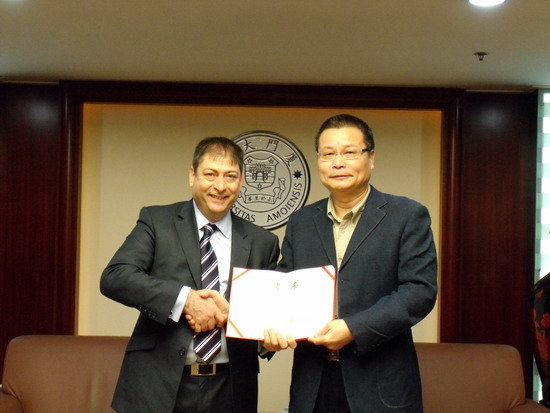 In the hope of further enhancing communication and cooperation between both sides, Professor Zheng Tongtao granted Makhoul the letter of appointment as the visiting professor of The International College and Overseas Education College. Professor Zheng also proposed that University of Southampton could set up a language training center in Xiamen and this proposal was welcomed by Professor Adam. Adam believed a language training center would promote the international communication of University of Southampton.