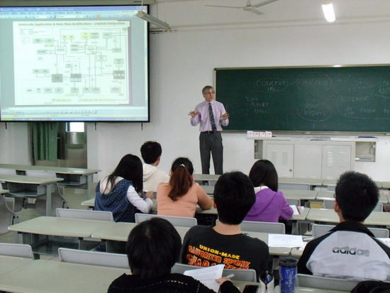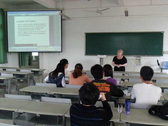 At 12.30 p.m. on November 23, Dr. J.W. Coakes (Senior lecturer of Business School of University of Westminster), Dr. Elayne Coakes and Geng Yin (Marketing Director of China-Britain Business Council) prepared a demo class of management principles to our students. The demo class was held in classroom 209 of building 5 on Zhang Zhou campus and aimed to let students experience British teaching pattern.