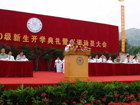 On the morning of September 17, our school held the opening ceremony for freshmen of 2010 on Zhangzhou campus. The president Zhu Chongshi delivered a speech on the ceremony, hoping the freshmen could transit from teenagers to adults as soon as possible, becoming initiative to take responsibilities, learning to be independent, self-disciplined and tolerant.