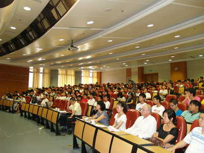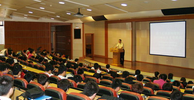 At 9:30 am of September 15, the International College held a grand opening ceremony for freshmen in 2010 in the lecture hall on the first floor of the main building. Dazhou Yang, the Project Leader of Britain Higher National Diploma in Chinese Service Center for Scholarly Exchange, Ministry of Education, and the dean of the International College Tongtao Zheng, Vice-dean Hu Geng, director of the office Guanhua Huang, as well as other faculties and staffs in International College attended the ceremony, which was presided by the secretary of the International College Kunyu Zeng.
