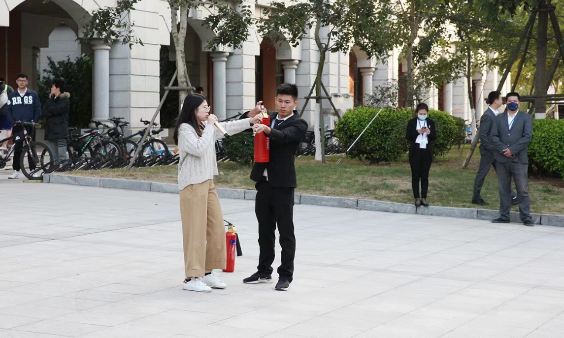 On the afternoon of November 26, International College (IC) conducted fire extinguisher operation drills at the square west to Kunluan Building on Xiang’an Campus.