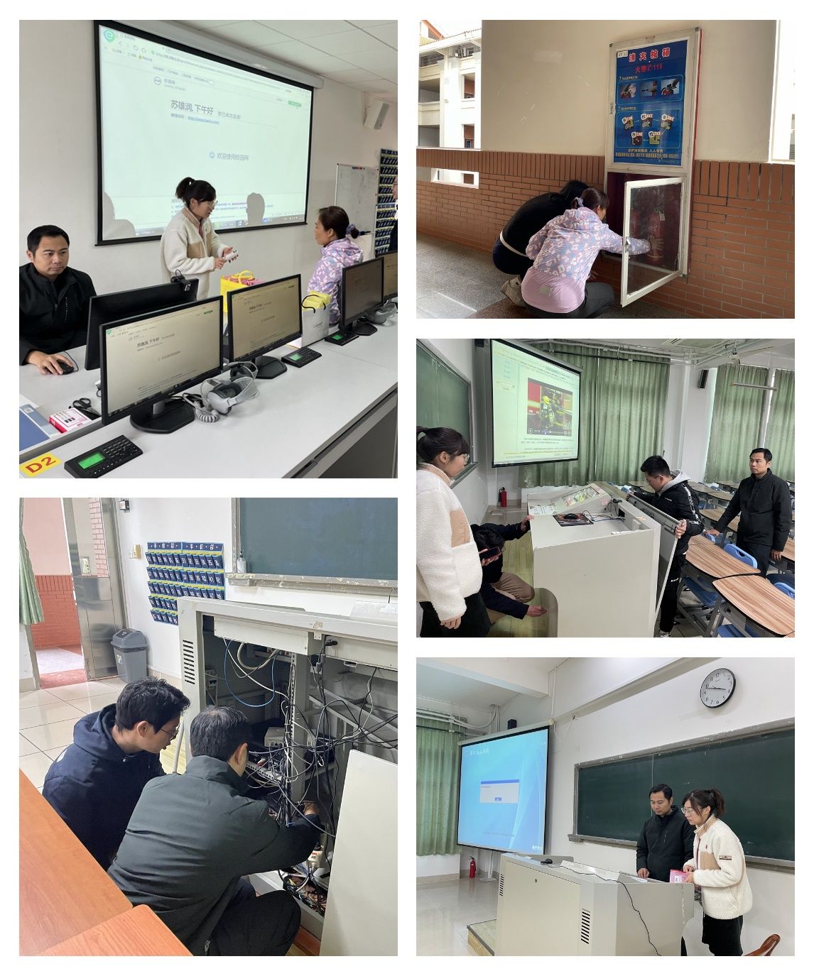 In order to ensure the orderly teaching work in the new semester, the academic affairs department cooperated with technicians, logistics support and safety officers to form a working group to check the operation of teaching equipment in each classroom, focusing on the detailed inspection of the operation of projectors, amplifiers and wireless networks in each classroom. In the process of inspection, troubleshooting shall be carried out quickly to ensure that all teaching equipment can be used normally before the beginning of the new semester.