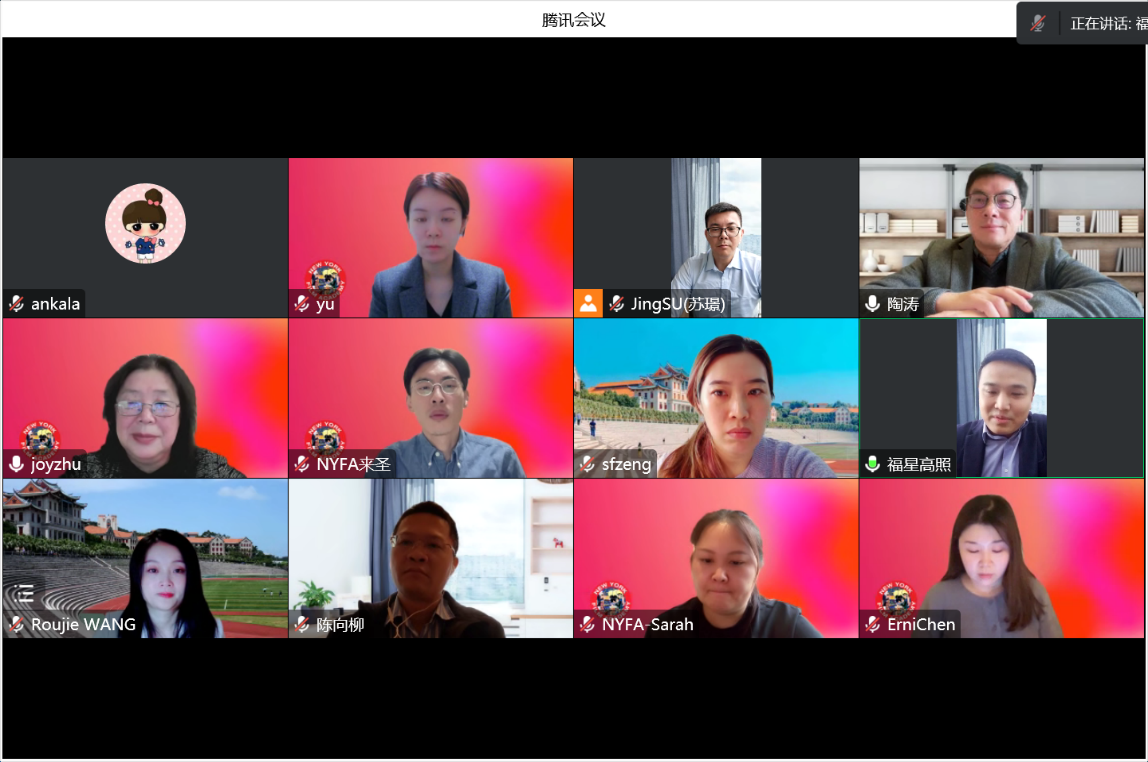 On the morning of January 12, the cooperation meeting between International College(IC)of Xiamen University and New York Film Academy (NYFA) was successfully held in the form of an online Tencent meeting. Zhu Yuhua, Vice President of New York Film Academy, Yu Zixi, Deputy Director of the China Office of NYFA, and relevant leaders, Gao Xing, Consul of the Consulate General of China in New York, Professor Tao Tao, Dean of IC of Xiamen University, Chen Xiangliu, Deputy Dean of IC, Wang Roujie, Leader of the English Teaching and Research Group of IC, Zeng Shufan, Leader of the Art Teaching and Research Group of IC, and relevant staff attended the meeting.