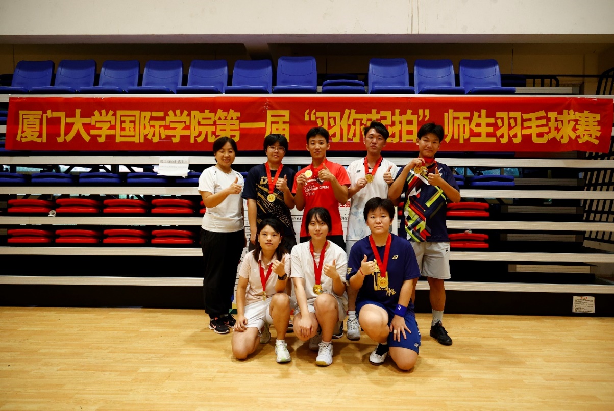 At 9:00 am on October 14, the first badminton match of International College for teachers and students started as scheduled at the second floor of the Fengyu Sports Center of Zhangzhou Campus, Xiamen University. Luo Liuhe, the instructor of the Sports Department of the Student Affairs Office of International College, organized the competition. Eight teams of teachers and students from all grades of the college, a total of 66 people participated.