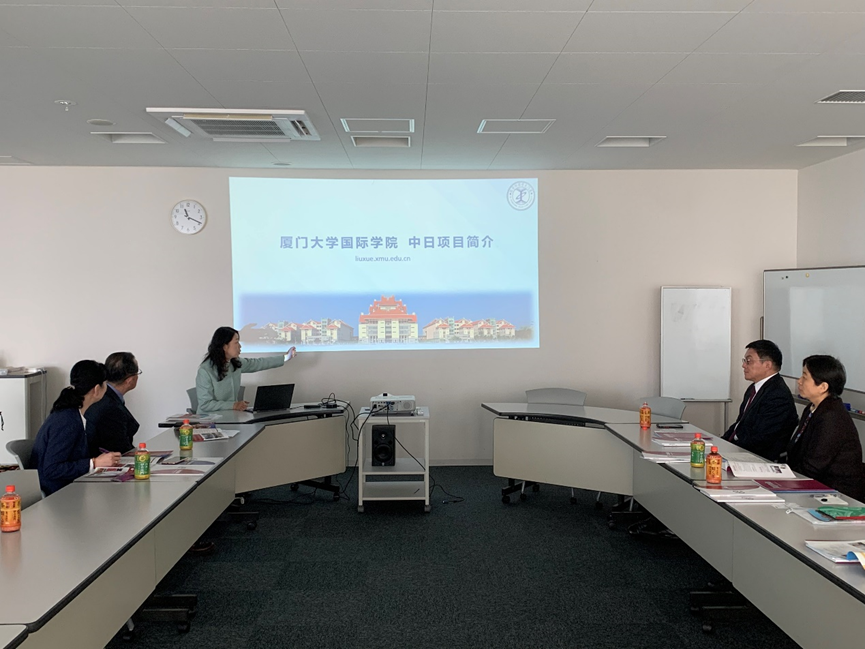 At the invitation of Horikawa Tomohiro, President of Shizuoka Sangyo University(SSU), and Wataru Hasegawa, Chairman of the Board of Directors of Kyoto College of Graduate Studies for Infomatics(KCGI) in Japan, Professor Tao Tao, Dean of International College(IC), Xiamen University(XMU), Ma Xianghua, Deputy Chair of the Party Committee of IC, Yan Sa, Head of the Japanese Language Teaching and Research Group, and Ai Hao, Director of the Office of IC, visited Shizuoka Sangyo University and The Kyoto College of Graduate Studies for Informatics (KCGI) in Japan, and conducted in-depth exchanges on the teaching plan, curriculum setting, daily management and other matters related to student training, as well as the cooperation and development of future projects.
