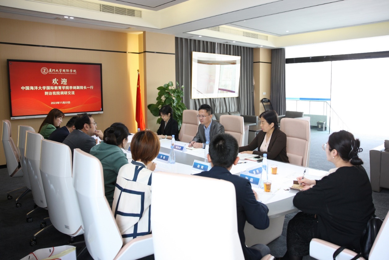 On November 22, Li Jian, Deputy Dean of School of International Education, Ocean University of China, and his delegation of 7 people visited International College(IC), Xiamen University (XMU). Chen Xiangliu, Deputy Dean of IC, Ma Xianghua, Deputy Chair of IC and the related staff participated in the discussion and exchange.