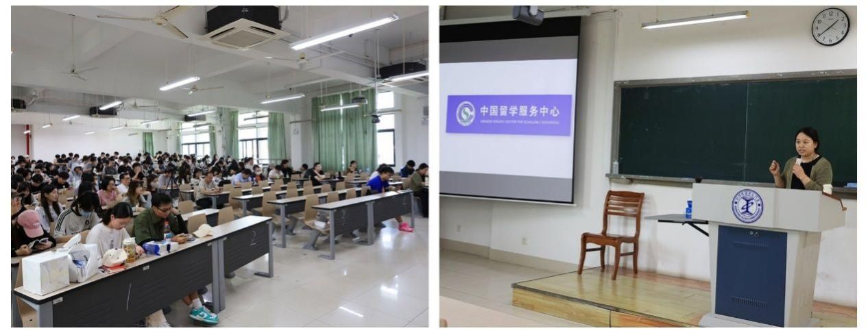 The teachers of the study abroad working group held lectures for students of IC in Classroom 511, explaining in detail the procedures for studying abroad and the relevant preparations before going abroad, focusing on on-site training for students in terms of visa processing, entry registration, master's application and etc.