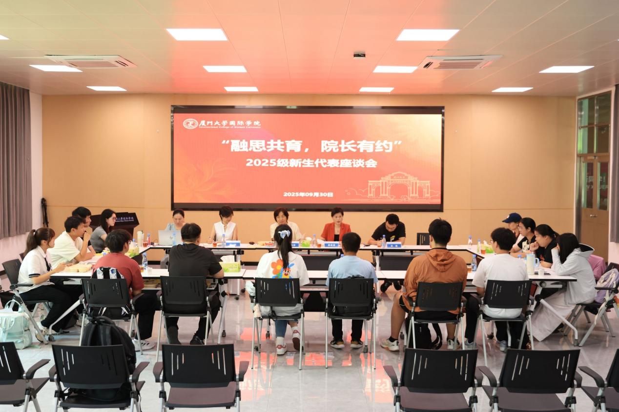 To gain an in-depth understanding of the academic and living conditions of the Class of 2025 and enhance the college's educational, administrative, and student service standards, International College(IC), Xiamen University(XMU) held a freshmen symposium on September 30th at Room 101, Building 4, Zhangzhou Campus. Dean Yu Hongbo engaged in a cordial dialogue with freshman representatives, discussing topics related to personal growth and development. The dialogue was presided over by Ma Xianghua, Deputy Secretary of the College Party Committee.