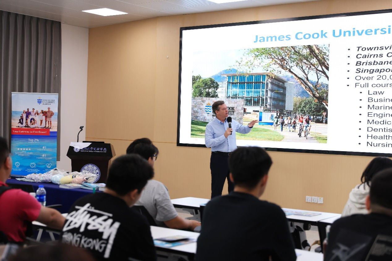 At 1:00 p.m., the university’s information session was held in Room 101 of Building 4, attracting active participation from students enrolled in the SQA-AD (3+1) program and Bachelor's degree (2+2) Programmes of IC. At the beginning of the event, Jamie Fellows introduced his professional background: he not only holds multiple key positions at JCU, including Head of the Law Department and Director of the Tax Clinic, but also boasts academic experience from prestigious institutions such as University of Oxford and the University of Sydney. His research areas cover core legal and ethical topics, including youth justice and criminal sentencing, and he holds significant roles in Australia’s legal education sector. Subsequently, through a PowerPoint presentation, he provided a detailed introduction to JCU’s four campuses, the scale of its student body, and its modern facilities. He highlighted the university’s strengths, such as its business programs ranking first in student engagement in Queensland and its graduates’ starting salaries being among the highest in Australia. He particularly emphasized the university’s focus on integrating theory with practice, offering students abundant internship opportunities that effectively enhance their global employability.