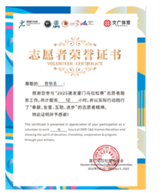 At Xiamen University, I have never walked alone. Whenever I encountered difficulties in my studies or daily life, there were always teachers offering patient guidance and classmates standing by my side. I am deeply grateful to every one of my academic teachers, my class counsellors, and the friends I have met through various activities. It is their support that has enabled me to continuously push beyond my limits and move forward with greater stability and confidence.