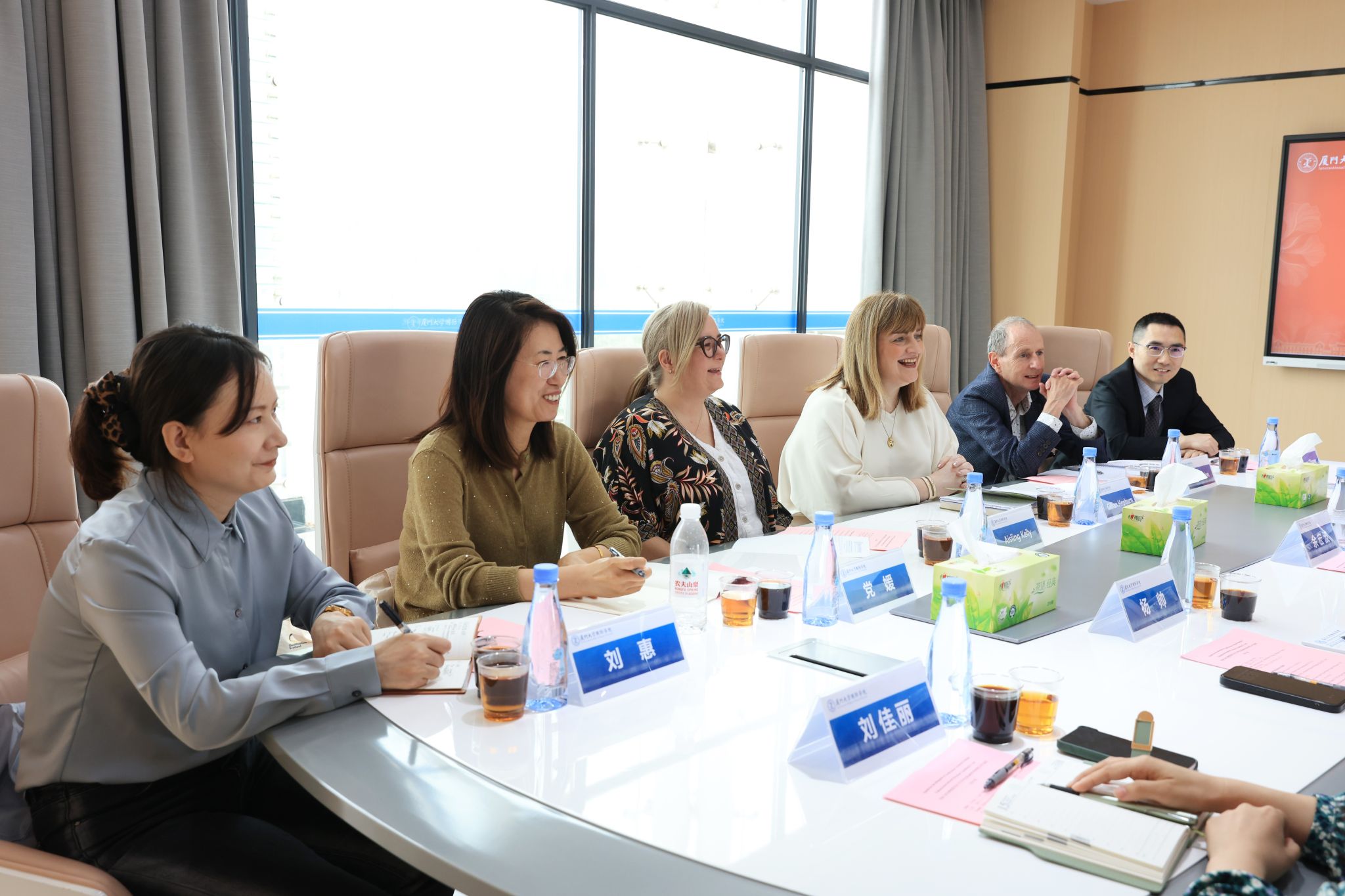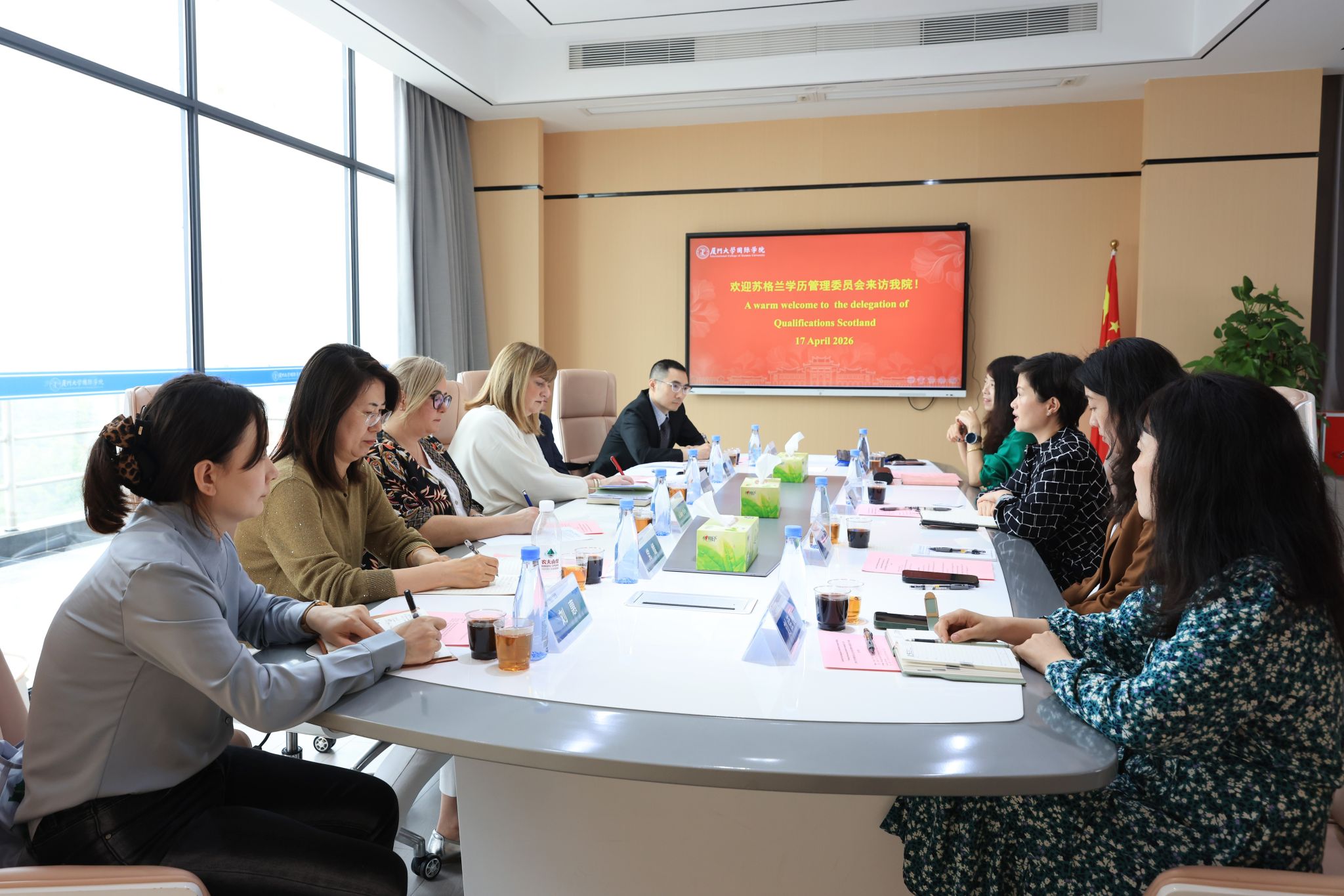 On April 17, a six-member delegation led by Gillian Hepburn, Director of International at Qualifications Scotland, and Dang Yuan, Deputy General Manager of Beijing YinHong International Education Consulting Co., Ltd., visited International College(IC), Xiamen University(XMU). Yu Hongbo, Dean of IC; Yang Shuai, Head of the Professional Teaching and Research Group; Liu Jiali, Head of the Accounting Discipline, and relevant staff met with the guests.