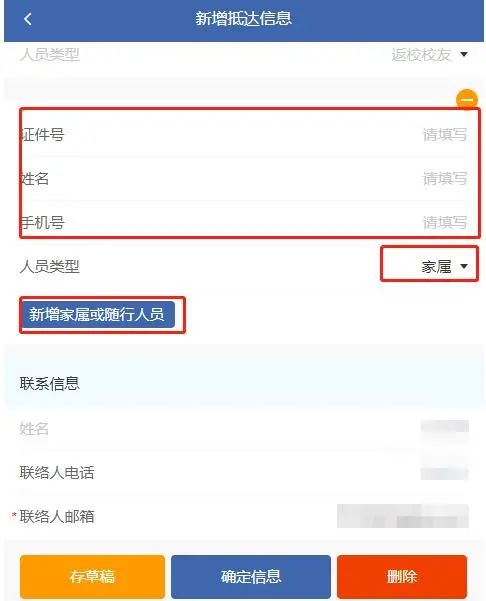 According to the requirements of the epidemic prevention and control, it is advocated not to take family members and accompanying person. If there are indeed family members who need to enter the campus together, please fill in the new arrival information in the column of “arrival and departure information” and select family members or accompanying person for the person type. And family members are required to show the original ID documents and cooperate with the normalized epidemic prevention and control measures.