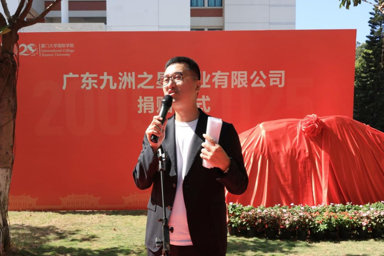 On the noon of November 8, the Stone Donation Ceremony for the 20th Anniversary of the International College(IC), Xiamen Universtiy (XMU) was held in front of Main Building 4 on the Zhangzhou Campus, XMU. The event was attended by Yu Peizhong, President of the International College Alumni Association of Xiamen University and Chairman of Guangdong Jiuzhou Star Real Estate Co., Ltd.; Li Zhiyong, Member of the Standing Committee of the Party Committee of XMU and Vice President of XMU; Yu Hongbo, Dean of IC, XMU; Chen Yundong, Deputy Secretary-General of the XMU Alumni Association; Xu Bin, Deputy Secretary-General of the Education Development Foundation; Zhang Xiaoyun, Vice Dean of International College; as well as representatives of faculty and students. The ceremony was presided over by Zhou Lei, the Party Secretary of IC.