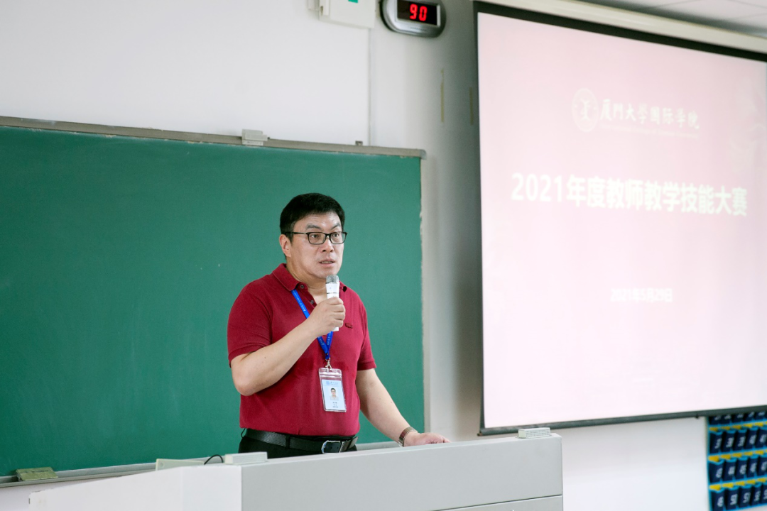 Before the competition, professor Tao delivered a speech on stage. On behalf of the leading group of the International College, he congratulated on the organization of the teaching competition, welcomed the judges and teachers who attended, and expressed gratitude to the trade union and administrative staff who organized the competition. Subsequently, professor Tao put forward some requirements to the participating teachers:Firstly, stay true to your original aspiration, love teaching. As a teacher, we should carry responsibility on our shoulder, prepare for each lesson carefully, actively listen to and collect the feedback from students and strive to improve the teaching level. Secondly, to fully realize the importance of teaching. International college is a teaching-oriented college, so the teaching quality is the lifeline of the college’s development. Thirdly, Teachers should learn from each other. This competition is not only a race, but also a platform to communicate. It is hoped that teachers can make the best of such an opportunity to learn and communicate from each other to improve the teaching level. Fourthly, Keep pace with the times, innovate teaching forms and expand teaching contents, such as exploring online teaching mode and introducing ideological and political courses. At last, he encouraged teachers to take the opportunity to thoroughly study and implement the spirit of general secretary Xi Jinping's congratulatory letter to 100th anniversary of Xiamen University, to transform the upgrading of teaching level into a driving force and source for promoting the development of high-quality education in International College, and to pay tribute to 100th anniversary of the founding party and 100th anniversary of XMU.