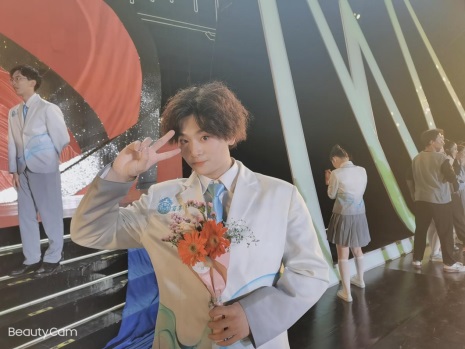Before the performance, we had to go to the Fengyu Gymnasium to make up. As soon as we entered the gymnasium, we saw nearly 150 makeup artists gathered together, spreading all kinds of cosmetics on five nearly 10-meter-long make-up tables, ready to help us make up one by one. When it was my turn to do make-up, the teacher said, "I will draw you an eyeliner? I think you must look great! Would you like to try it?" As expected, I didn't hesitate to let her show off on my face. In the end, I realized that I was the only boy who drew the eyeliner!