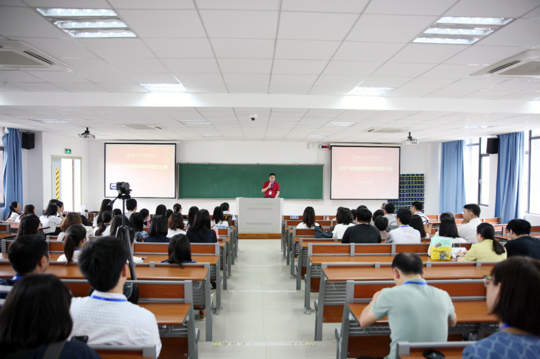 Before the competition, professor Tao delivered a speech on stage. On behalf of the leading group of the International College, he congratulated on the organization of the teaching competition, welcomed the judges and teachers who attended, and expressed gratitude to the trade union and administrative staff who organized the competition. Subsequently, professor Tao put forward some requirements to the participating teachers:Firstly, stay true to your original aspiration, love teaching. As a teacher, we should carry responsibility on our shoulder, prepare for each lesson carefully, actively listen to and collect the feedback from students and strive to improve the teaching level. Secondly, to fully realize the importance of teaching. International college is a teaching-oriented college, so the teaching quality is the lifeline of the college’s development. Thirdly, Teachers should learn from each other. This competition is not only a race, but also a platform to communicate. It is hoped that teachers can make the best of such an opportunity to learn and communicate from each other to improve the teaching level. Fourthly, Keep pace with the times, innovate teaching forms and expand teaching contents, such as exploring online teaching mode and introducing ideological and political courses. At last, he encouraged teachers to take the opportunity to thoroughly study and implement the spirit of general secretary Xi Jinping's congratulatory letter to 100th anniversary of Xiamen University, to transform the upgrading of teaching level into a driving force and source for promoting the development of high-quality education in International College, and to pay tribute to 100th anniversary of the founding party and 100th anniversary of XMU.