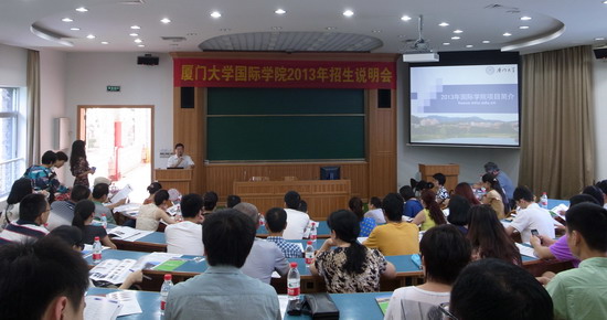 In order to offer in-depth understanding of our college to students and parents, and to present reference for the upcoming college entrance examination, after the "Open Day" event, our college held "2013 International College Admissions Seminar”at conferenceroom 204 in Jimei II teaching building, to provide advicefor the guests who arrived at the scene, and to introduce details of outstanding international education projects of our college.