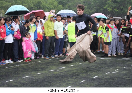 Subsequently, there was a kangaroo hop relay. Students from the Overseas Education College and the International College actively participated with fun.