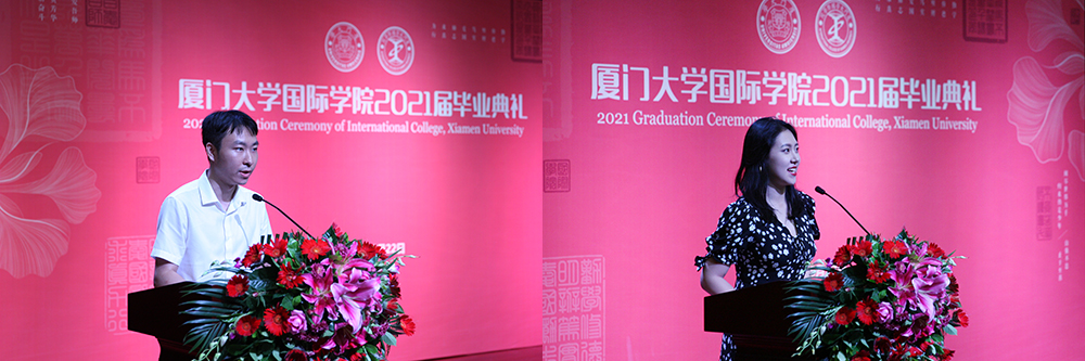 Subsequently, Associate Professor Yang Jing, as teacher representative, delivered a speech. She congratulated the students for the fruitful results they have achieved over the past four years. She pointed out that university is not only about learning “how to get along with yourself and how to get along with others”, but the most important thing is to develop the habit of lifelong learning. She hopes that the students can always uphold the school motto of Xiamen University and have a full life.