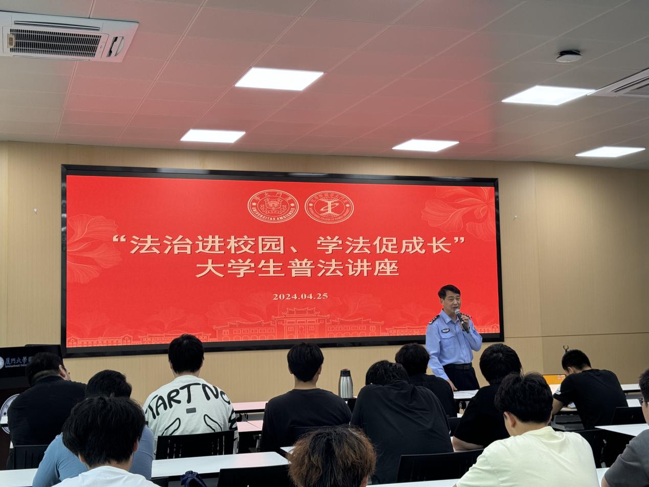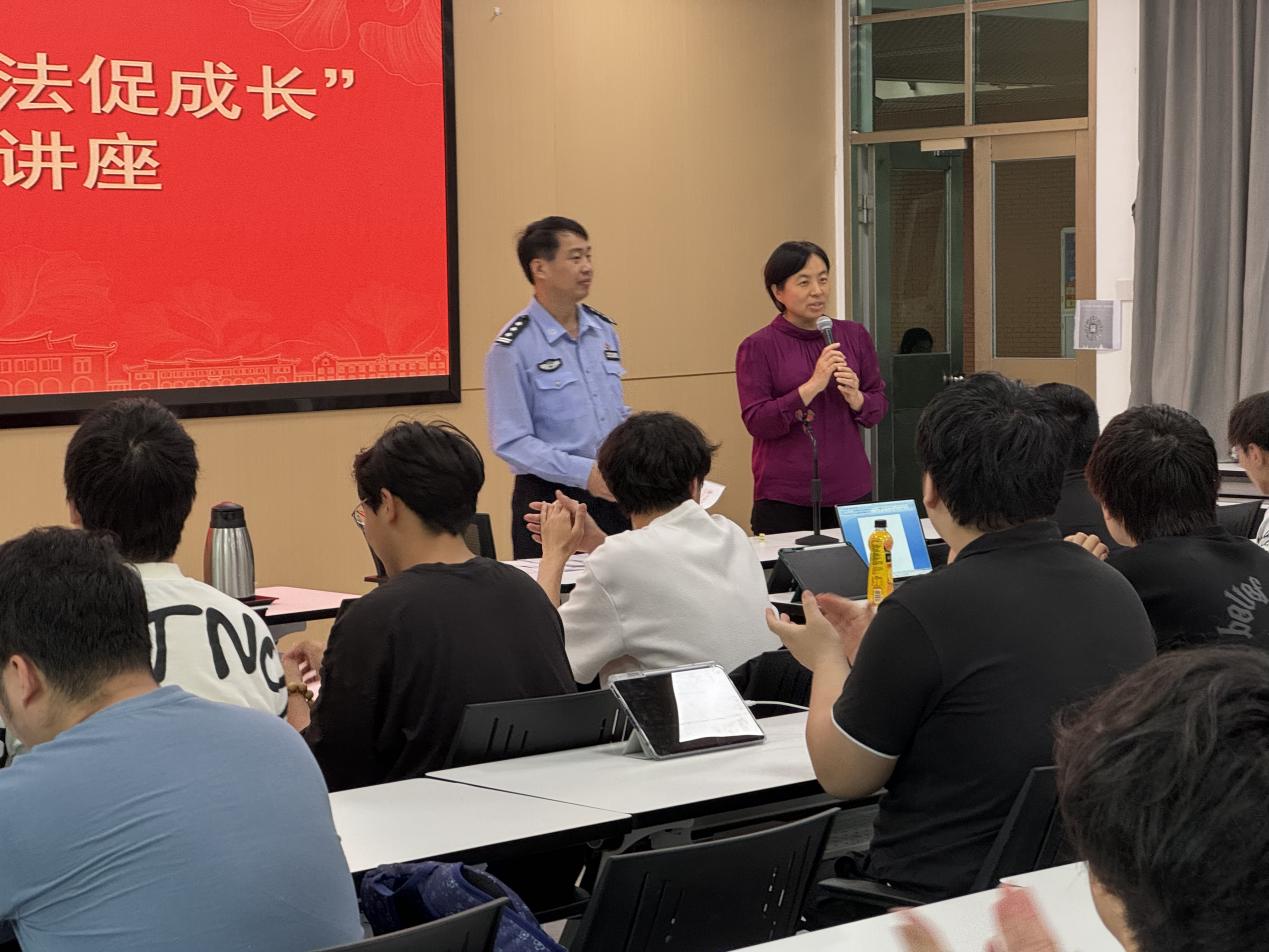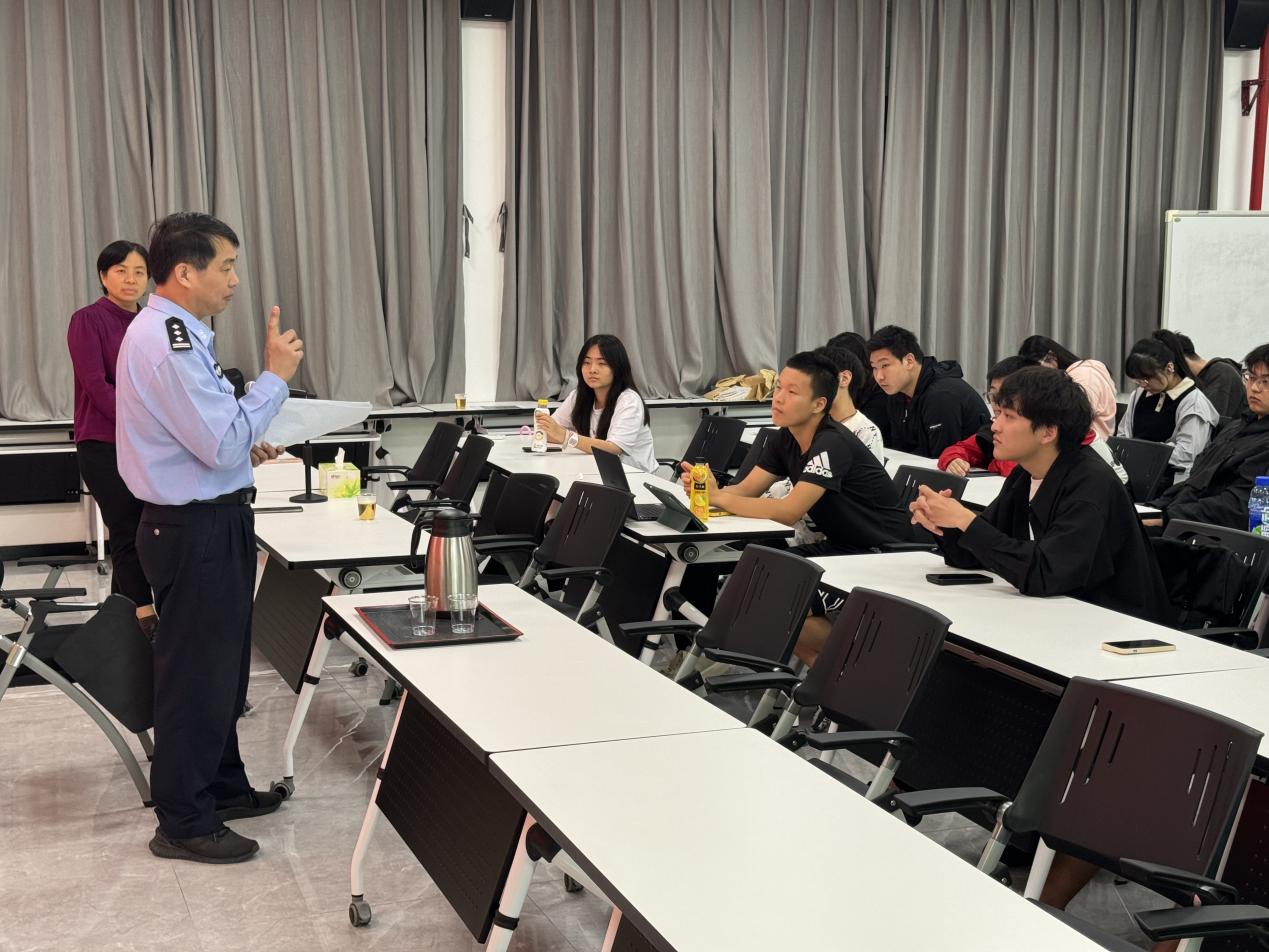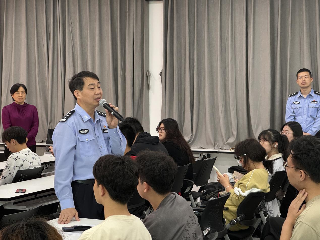 讲座中,警官结合自身工作经验、身边的真实案例和相关的法律条文,以案释法,以法论事,详细介绍了财产权、人身权、电信诈骗、国家安全、“黄赌毒”五个方面的相关法律知识,引导同学们树立正确的世界观、人生观和价值观,充实法律知识,增强法治观念,提升自我保护能力。