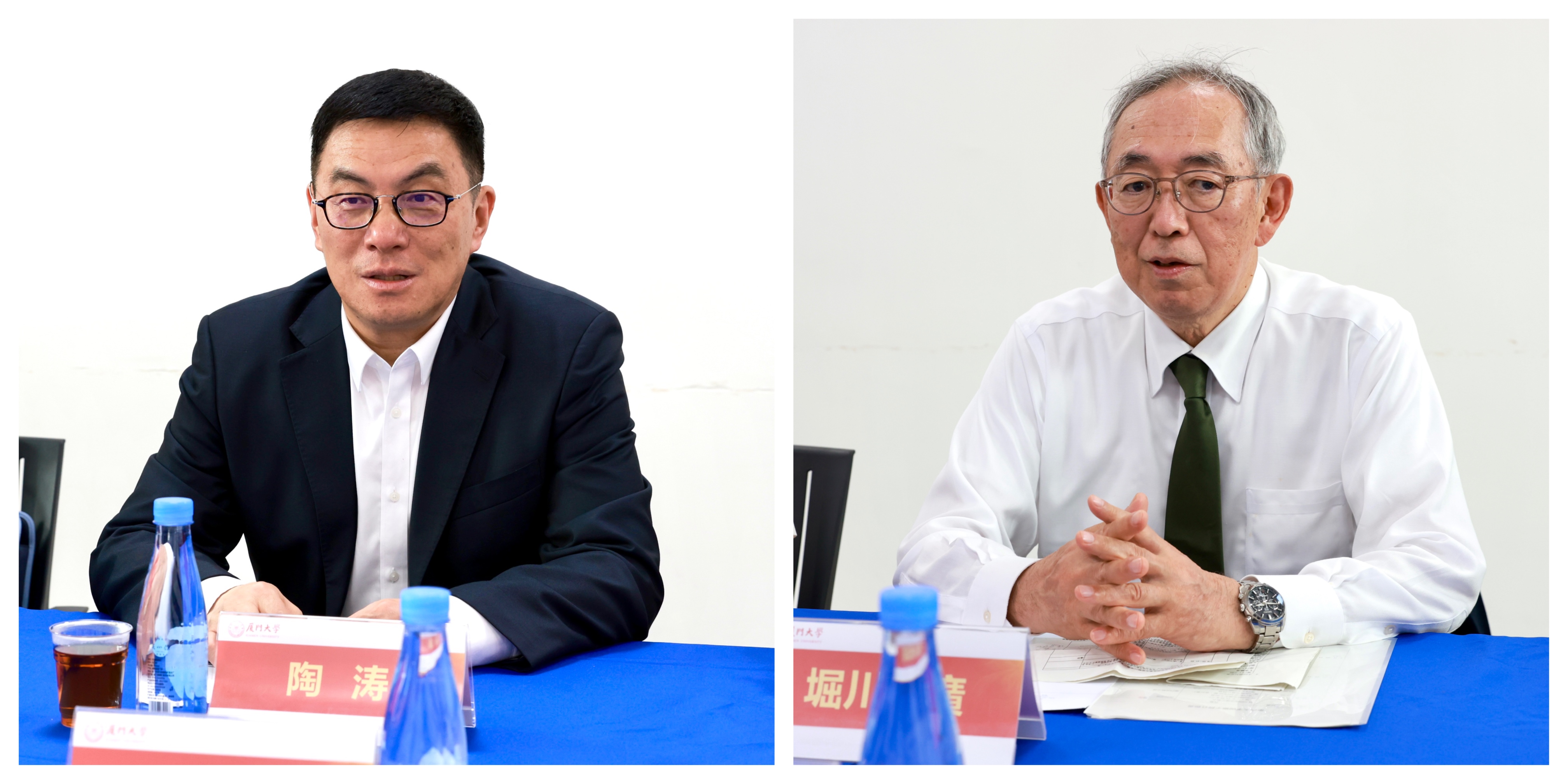 陶涛院长对堀川知廣校长一行的到来表示欢迎,他表示,这是自2018年以来的6年里,他与堀川校长的第五次会面,这种密切的交流是确保合作项目顺利开展的一个重要因素。他指出,近年来,学院进一步明确办学定位,不断提升项目教学和学生管理质量,培养成效逐年提高,项目已成为学院最成功的国际本科2+2项目,获得了学生、合作院校和社会三方的高度满意。希望双方能共同努力,继续保持两校教育交流项目良好发展。