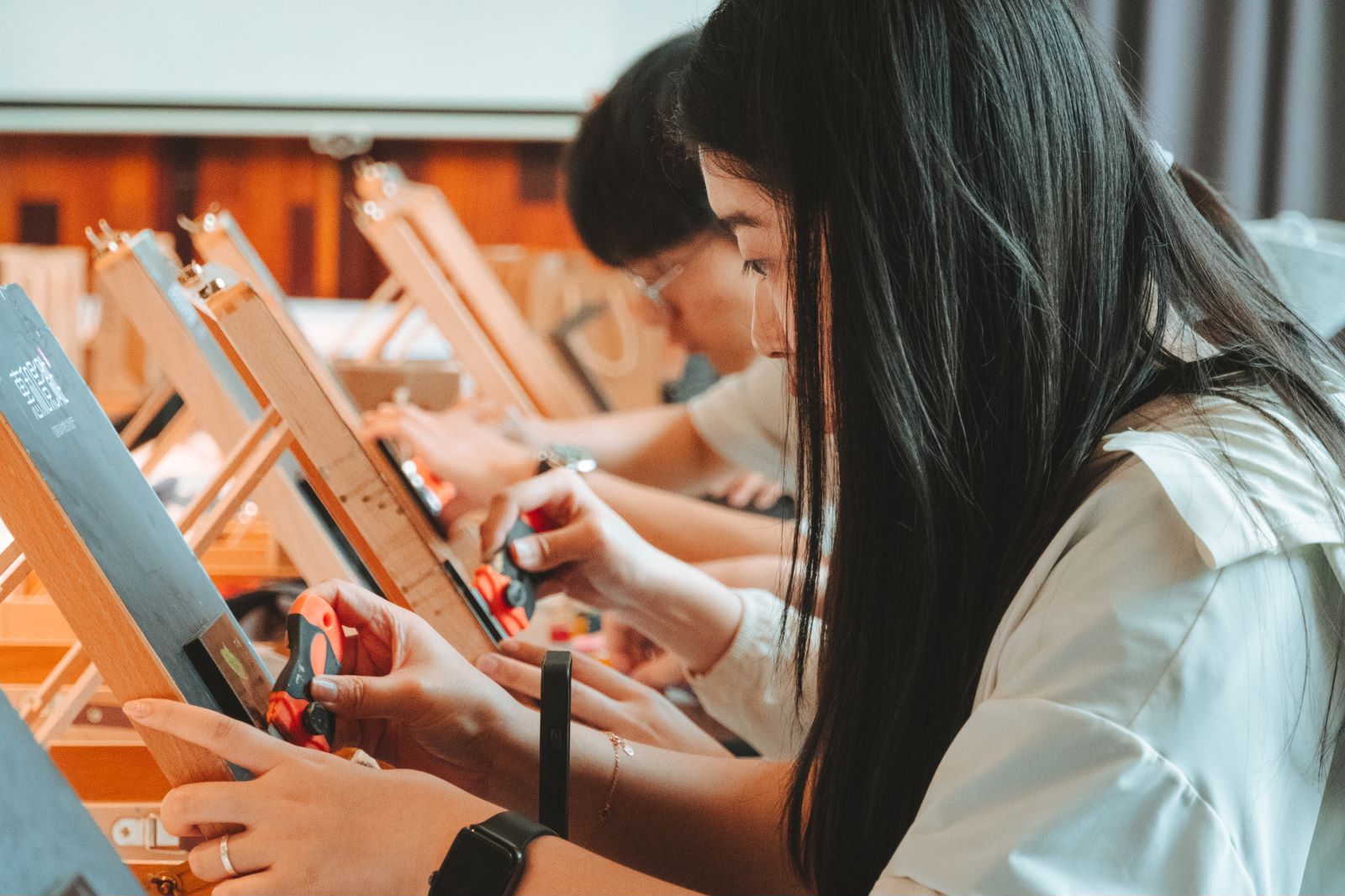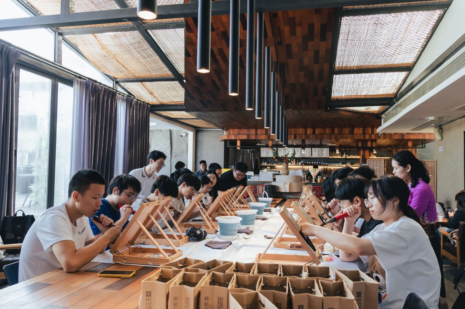在惠和书院,惠和股份有限公司董事长、国家级非遗惠和影雕第16代传承人李雅华女士为大家介绍了惠和影雕的发展及技艺特点。在与同学们的交流中,李雅华畅谈了自己学习影雕技艺的心路历程,对惠和影雕的社会化传承、品牌化传播以及对生态保护的思考,并希望未来能有越来越多的年轻人加入非遗影雕的宣传阵营。