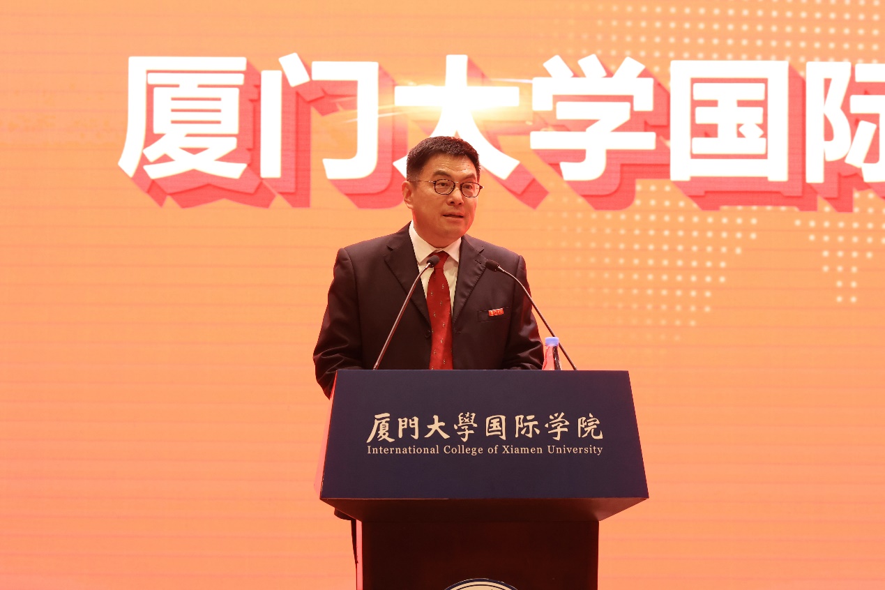 典礼在雄壮的国歌声中拉开帷幕。院长陶涛代表学院致辞,他首先为2024级新生送上衷心的祝贺和热烈的欢迎,向给予学院支持和信任的学生家长们表示崇高的敬意和衷心的感谢。他简要回顾了厦门大学的办学历程,结合学院发展及人才培养成果,他向同学们提出三点希望:一是希望同学们来到学院后,能牢记厦大人的初心使命,涵养家国情怀,自觉地将个人成长成才和国家发展大势紧密结合起来,努力成为堪当民族复兴重任的时代新人;二是希望同学们能坚持勤勉自律,不断追求卓越。以优秀的学长学姐为榜样,利用好各种学习条件,专心致志、潜下心来,刻苦学习,早日实现留学梦想;三是希望同学们能抓住出国(境)学习交流的机会,培养全球视野,建立勇担使命的世界格局,成长为通晓国际规则、积极参与国际事务和竞争、善于驾驭复杂国际事务的具有全球胜任力的人才。在即将迎来新中国成立75周年华诞之际,他进一步勉励同学们臻于至善、履践致远,用奋斗和汗水成就更好的自己,在新的征程上书写不负韶华的青春答卷。