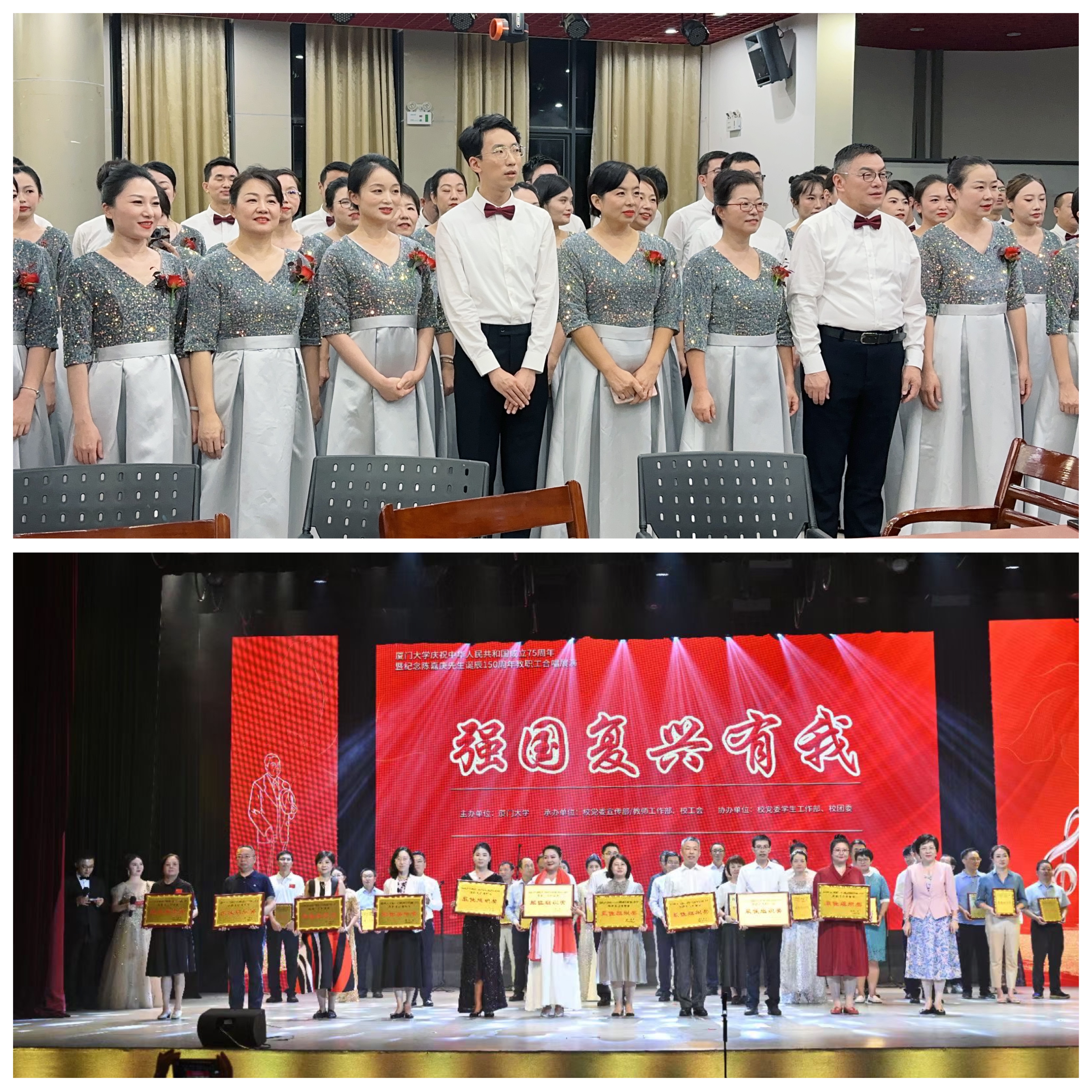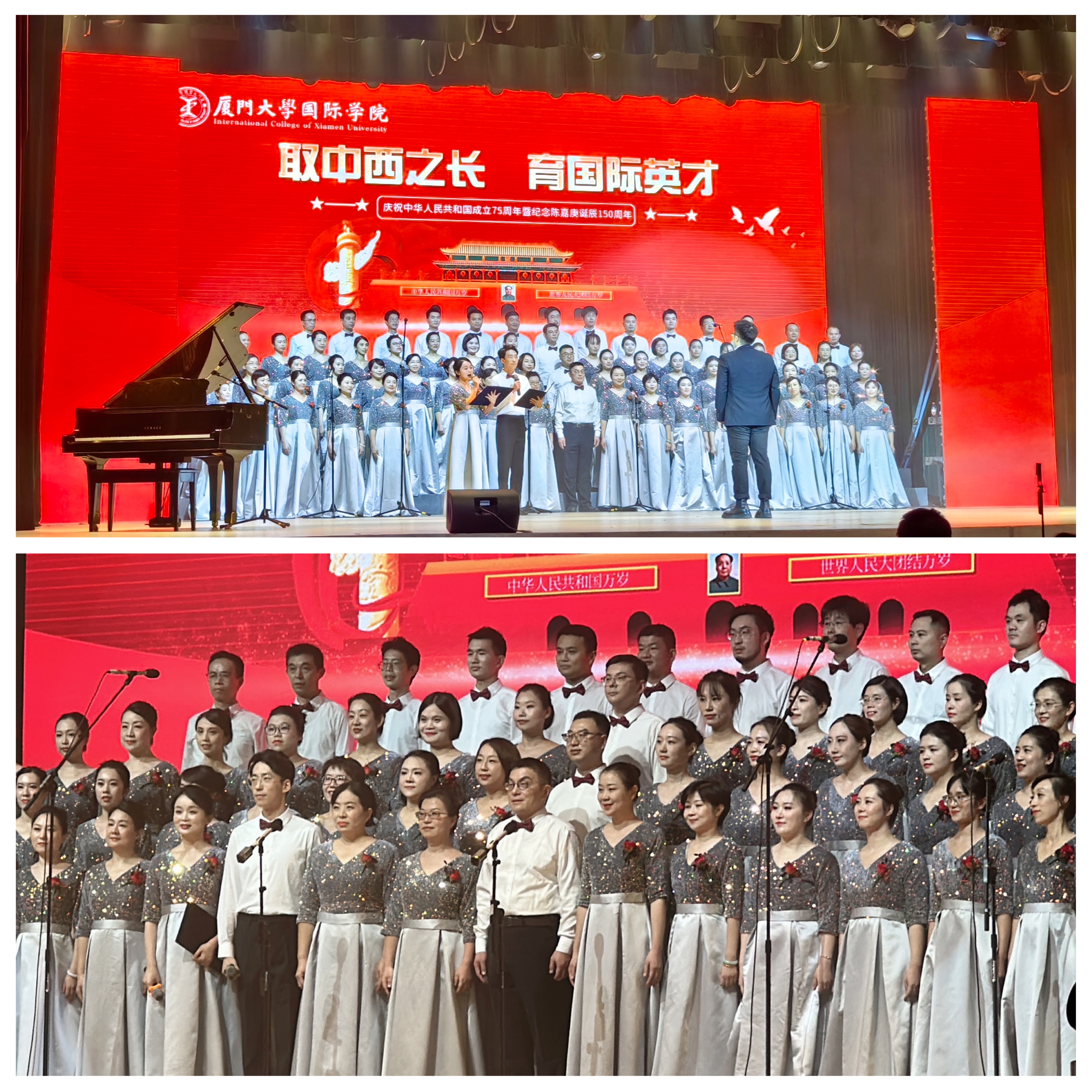 9月29-30日晚,厦门大学庆祝中华人民共和国成立75周年暨纪念陈嘉庚诞辰150周年教职工合唱展演在建南大礼堂隆重举行。全校共39支队伍参演,数千名教职工深情放歌,用激昂的歌声唱响对祖国的热爱及对校主陈嘉庚先生的缅怀。国际学院合唱团深情演唱《我和我的祖国》,用歌声祝愿祖国繁荣昌盛,荣获“最佳人气奖”和“最佳组织奖”。