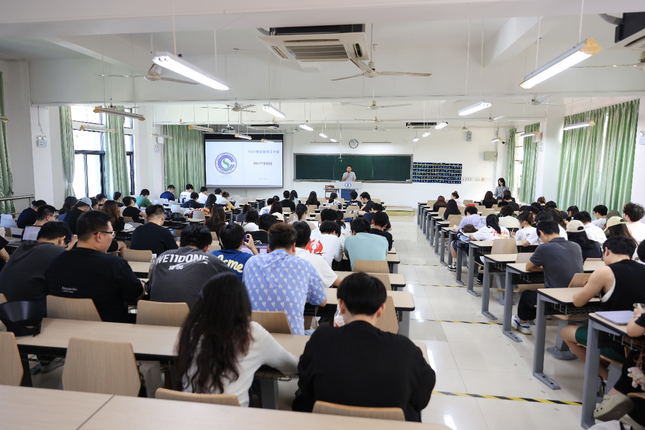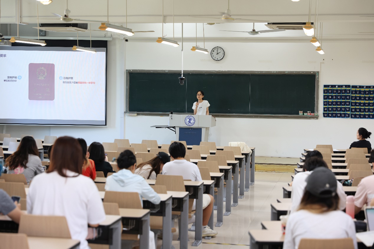 在高校交流会上,首先由中国留学服务中心SQA项目留学工作组老师为学院项目毕业班的同学们开展留学指导讲座。两位老师从项目背景、留学工作组介绍、留学规划以及留学准备等方面进行了详尽讲解,使同学们能够通过官方途径更加准确地了解项目院校等相关情况,尤其是同学们所关注的问题,如申请流程、成绩要求、学历学位认证以及申硕规划等。这一讲座有效地帮助学生们更好地进行相关学业规划安排。