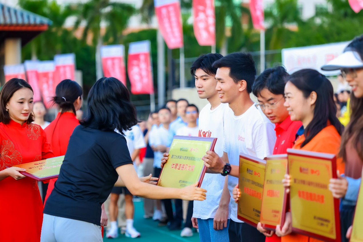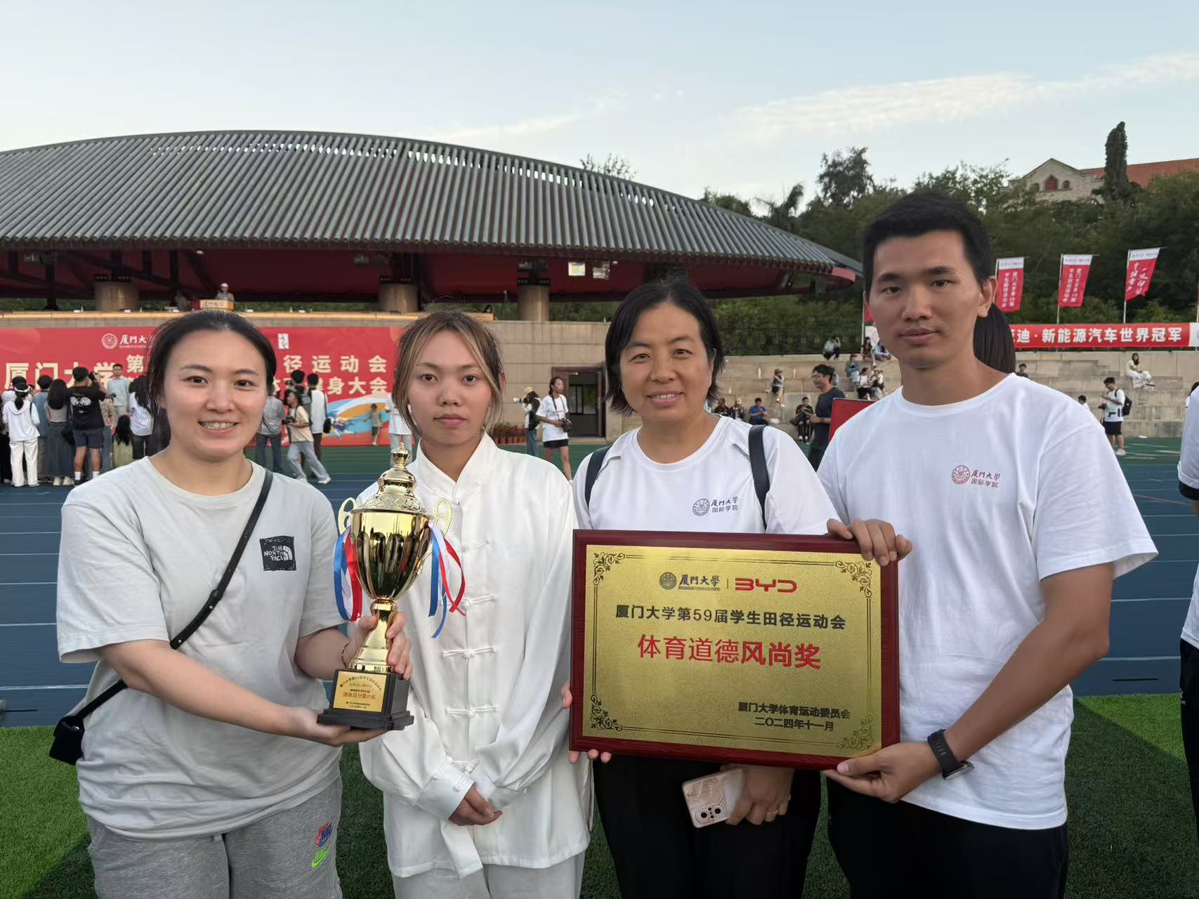 在今年的运动会中,我院学子齐心协力、奋勇拼搏,在赛场上展现出最佳国际范儿,经过激烈角逐,学院荣获思明赛区本科生组团体总分第六名及“体育道德风尚奖”,并在女子本科生组铅球、男子本科生组 100 米、男子本科生组 5000 米三个单项中获得冠军,再创新高。2023年,学院获厦门大学“联通杯”新生篮球联赛冠军,这是学院男篮自2018年以来,在全校联赛上的第3次夺冠;我感受到运动健儿顽强拼搏、永不放弃的精神。