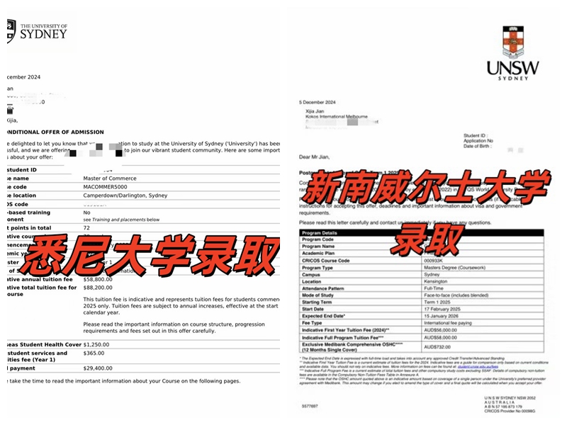 硕士阶段:已收到悉尼大学、新南威尔士大学莫纳什大学等大学研究生录取通知书。