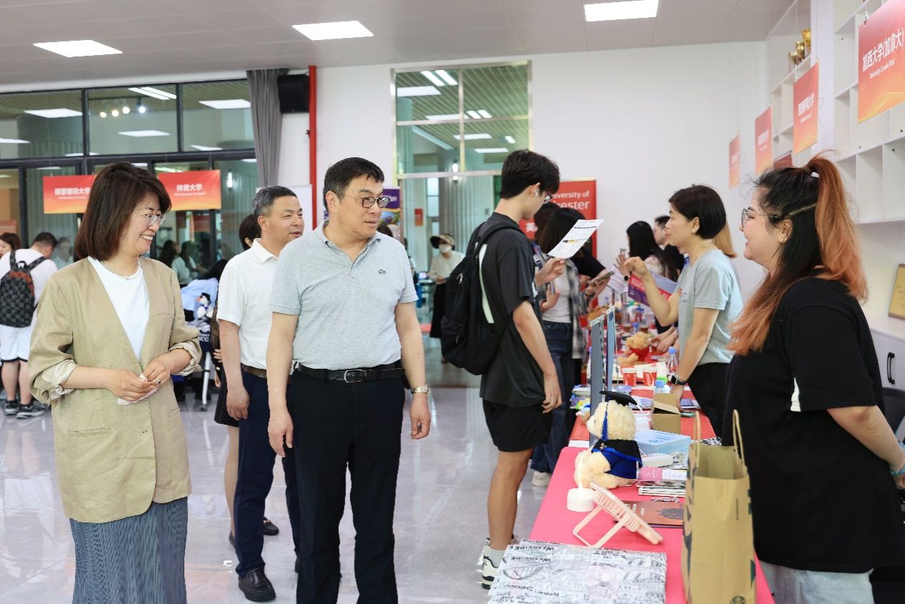 活动伊始,院长陶涛教授、副院长何海涛与北京吟虹国际教育咨询有限公司副总经理党媛一同参观了国外合作院校展区。他们与参展院校代表亲切交流,详细了解各院校办学特色及学生申请情况,并对国外院校的积极参与表示衷心感谢。